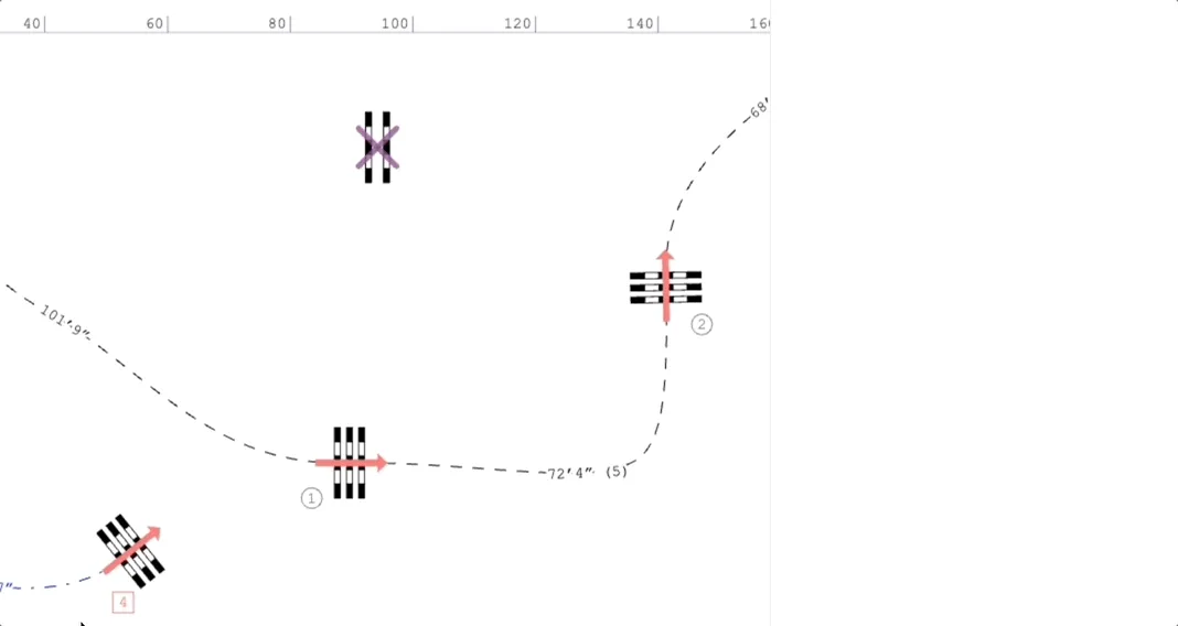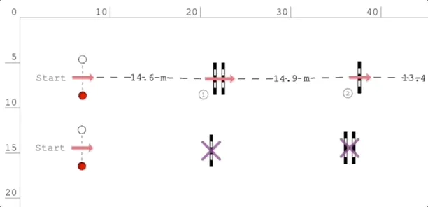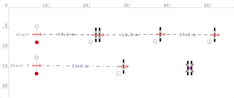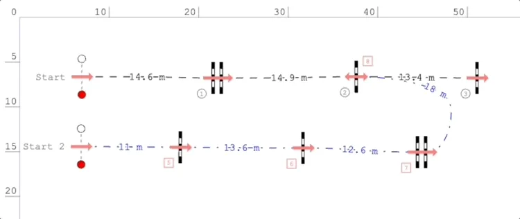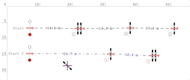 In this design pattern, the designer first places the obstacles on the arena and tries to arrange their positions and directions before drawing the actual course. Place the obstacles as explained in the guide Placing the obstacles, then use one of the following methods to connect them.