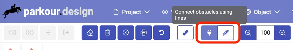 The process of connecting the obstacles to form a course is essential to how parkour.design operates. All obstacles that are added to the arena are by default disconnected – they are not part of the course. There are several methods of connecting the obstacles – use them depending on your personal preferences how you design your courses.