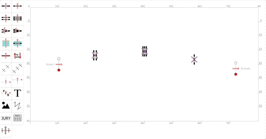 The real course will need a proper placement of the obstacles setting their angles and shaping the course, this example only demonstrates the idea.