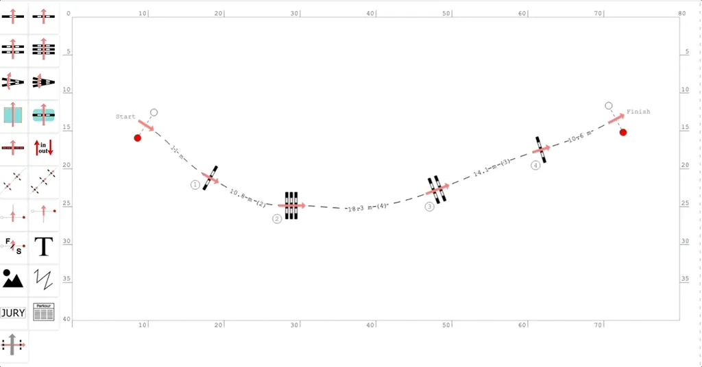 You can build a two-phased course step-by-step by placing on the arena and connecting:
