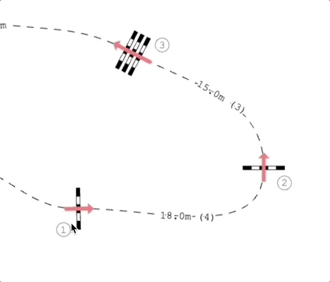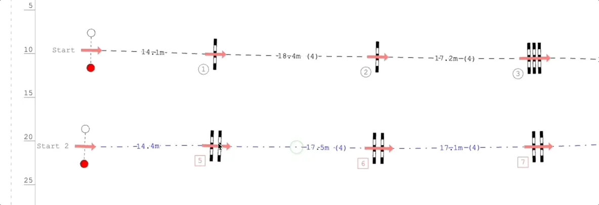 If you move, rotate or scale an obstacle or a group of obstacles, normally the track of the course leading to and from the obstacles move accordingly.