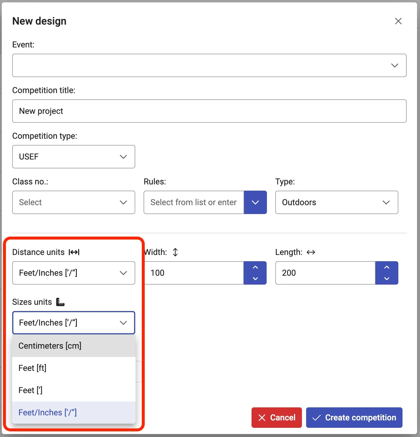 That approach makes it possible to have distances in feet and sizes in centimeters, or any other combination practiced at your location.