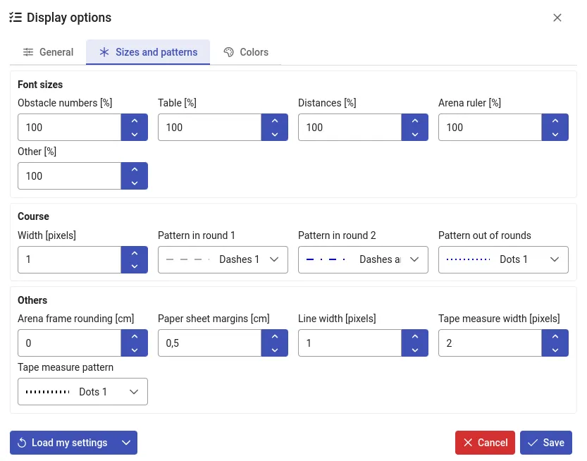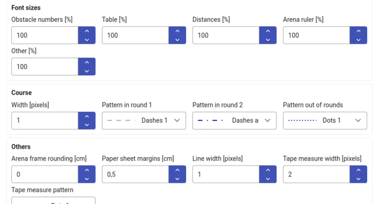 Dodano możliwość wyświetlania i drukowania linii odległości końców przeszkód od brzegu pola. Te linie mogą być pomocne przy rozstawianiu przeszkód na placu.