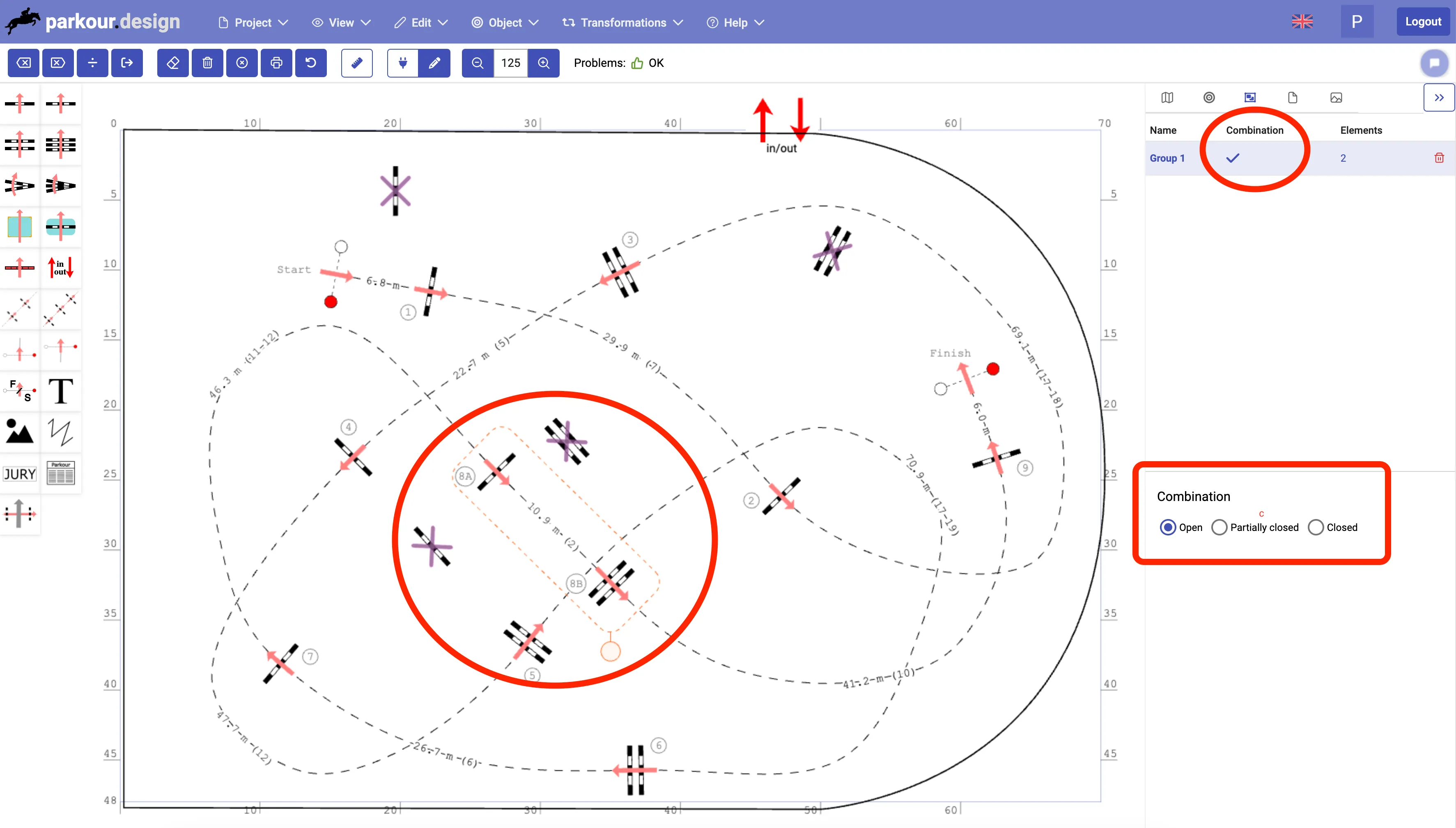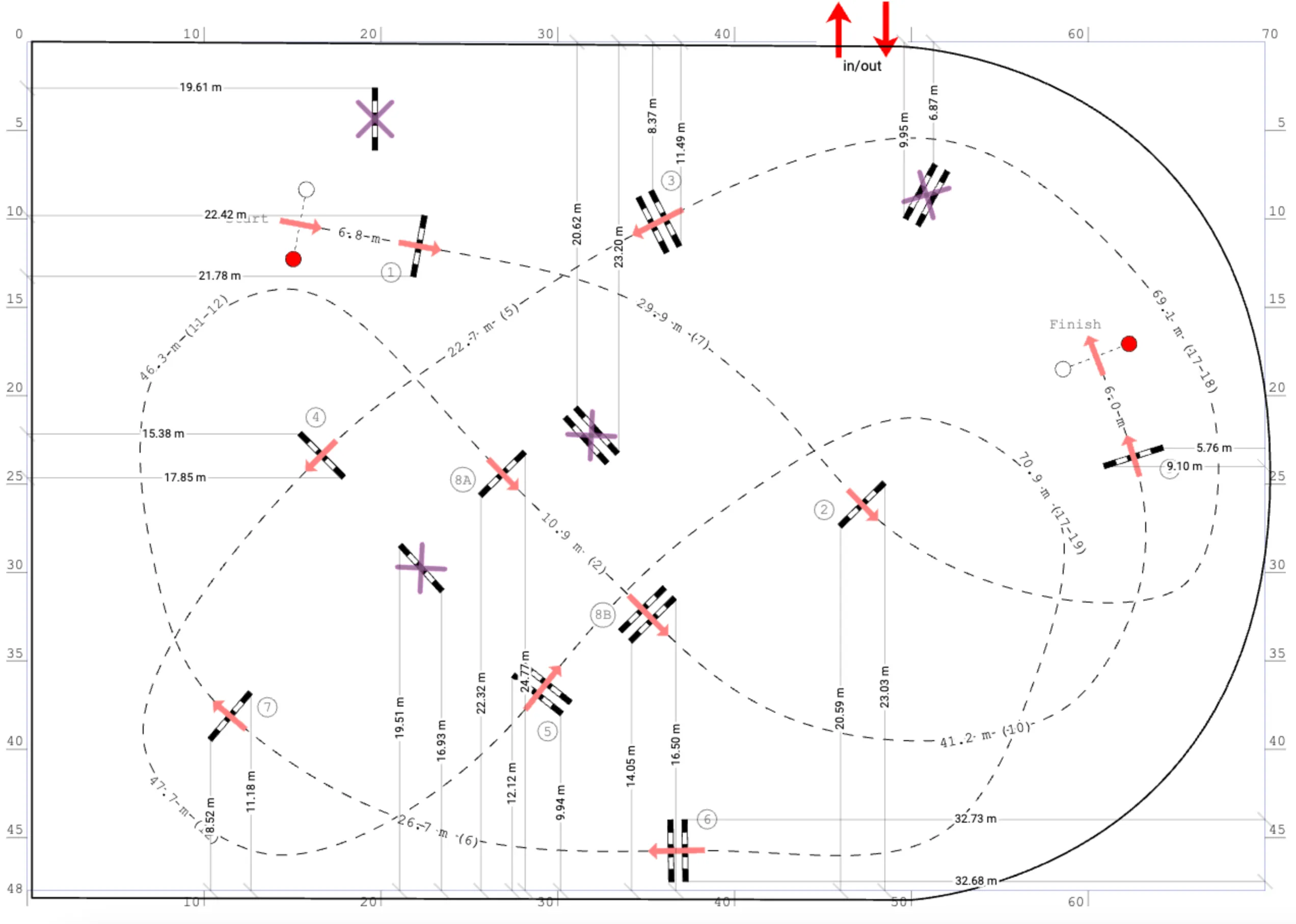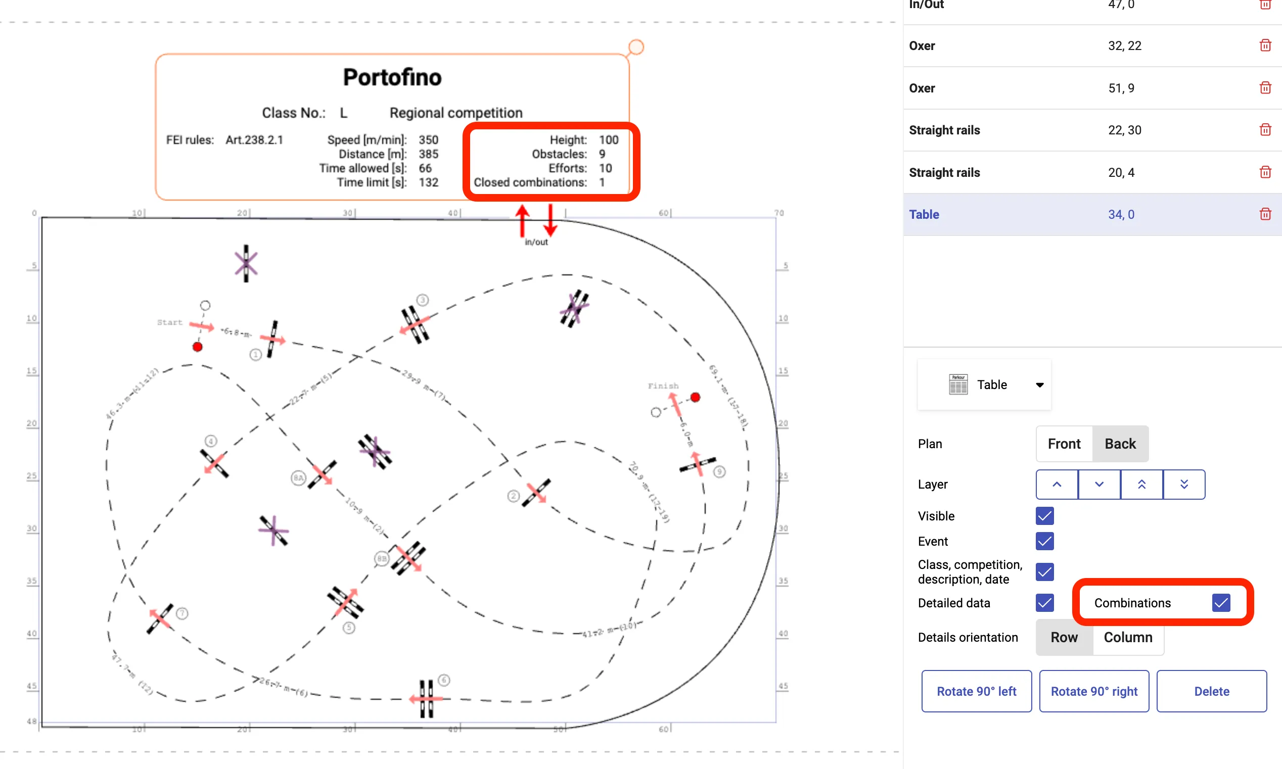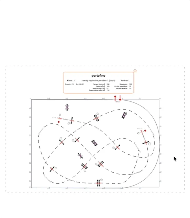 Dodano możliwość wyświetlania i drukowania linii odległości końców przeszkód od brzegu pola. Te linie mogą być pomocne przy rozstawianiu przeszkód na placu.
