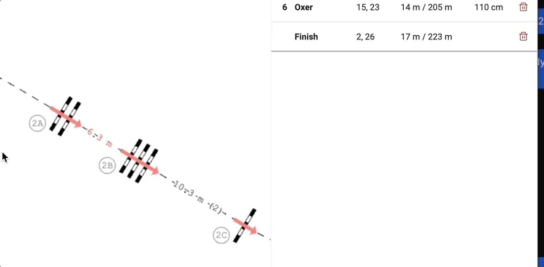 Dla szeregów, które są grupą teraz jest możliwe ustawienie odległości między przeszkodami. Wybierz grupę będącą szeregiem, wprowadź odległość ręcznie i potwierdź enterem, lub użyj strzałek. Szereg zostanie rozstawiony tak aby podana odległość była między każdymi kolejnymi przeszkodami w szeregu.