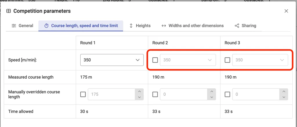 Do tej pory było możliwe wybranie wielu klas dla jednego konkursu, ale tylko jednej wysokość przeszkód. Teraz można podać różne wysokości przeszkód dla różnych klas.